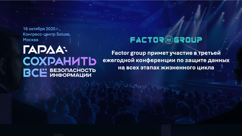 Приглашаем Вас посетить стенд Factor group на конференции “СОХРАНИТЬ ВСЕ Безопасность Информации” которая в этом году пройдет 16 октября в Москве. |